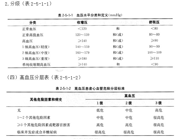 1.診斷 主要根據(jù)診所測量的血壓值,采用經核準的水銀柱或電子血壓計,測量安靜休息坐位時上臂肱動脈部位血壓。如果左、右上臂血壓相差較大,要考慮一側鎖骨下動脈及遠端有阻塞性病變。必要時,如疑似直立性低血壓的患者還應測量平臥位和站立位(1秒和5秒后)血壓。是否血壓升高,不能僅憑1次或2次診所血壓測量值來確定,需要一段時間的隨訪,觀察血壓變化和總體水平。