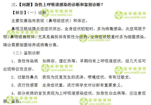 三、【問題】急性上呼吸道感染的診斷和鑒別診斷?