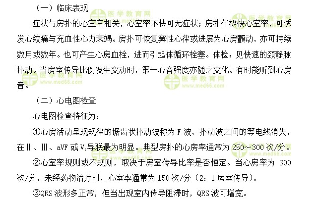 關(guān)于“心房撲動(dòng)的臨床表現(xiàn)和心電圖檢查”的考點(diǎn),有很多內(nèi)科主治醫(yī)師考生都比較感興趣,為了幫助大家了解,醫(yī)學(xué)教育網(wǎng)為大家整理如下: