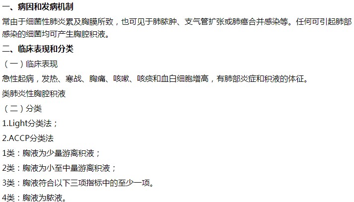 2021內科主治醫(yī)師相關專業(yè)知識考點類肺炎性胸腔積液