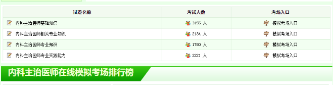 一、內(nèi)科主治醫(yī)師考試在線模擬考場,進入>>