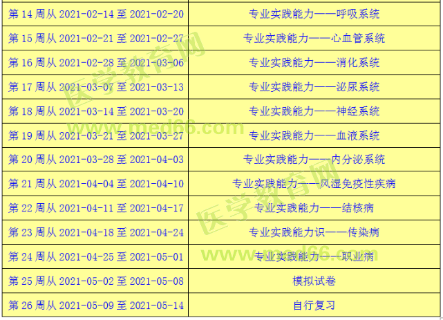 2021年內(nèi)科主治醫(yī)師備考周計(jì)劃來(lái)啦!快查收!