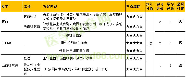 由以上內容可以看出,血液病考察的內容不是很多,考點難度也還可以,預估分值大概在8分左右,是不能放棄的內容!