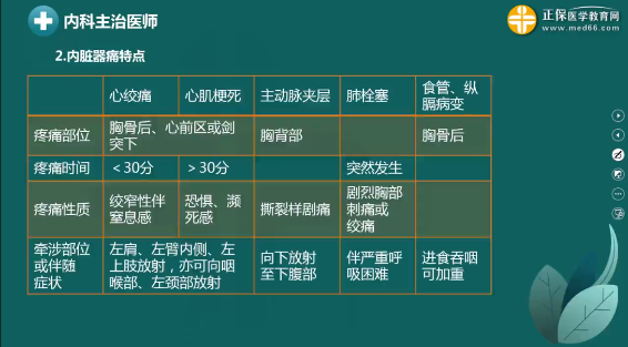專業(yè)!內(nèi)科主治醫(yī)師考點分析&精講:常見癥狀與體征-胸痛