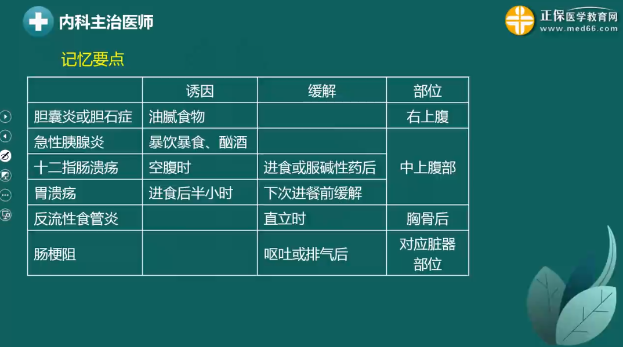 腹痛的部位為常考點。官方教材有以下內(nèi)容描述: