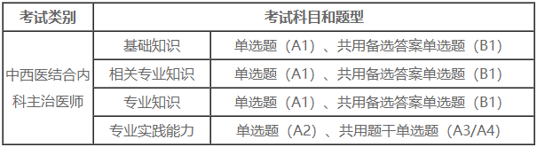 二、內(nèi)科主治醫(yī)師考試科目及題型