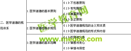 | 3.醫(yī)學(xué)倫理學(xué) | (1)醫(yī)學(xué)倫理學(xué)的概念 (2)醫(yī)學(xué)倫理學(xué)的歷史發(fā)展 (3)醫(yī)學(xué)倫理學(xué)的研究對象和內(nèi)容 (4)醫(yī)學(xué)倫理學(xué)與相關(guān)學(xué)科的關(guān)系 (5)學(xué)習(xí)醫(yī)學(xué)倫理學(xué)的意義和方法 | |