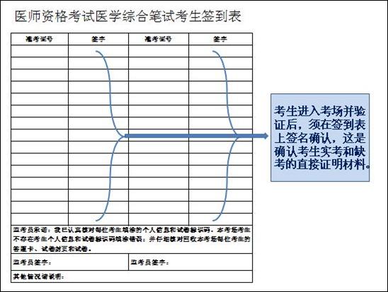3. 考生參加醫(yī)學綜合筆試進入考場后,須在《簽到表》上簽字,對號入座后將本人《準考證》、有效身份證明放在課桌右上角,以便核驗;監(jiān)考員啟封試卷袋前,考場內準考證號為首位和末位的兩位考生負責檢查試卷密封情況,并確認簽字。