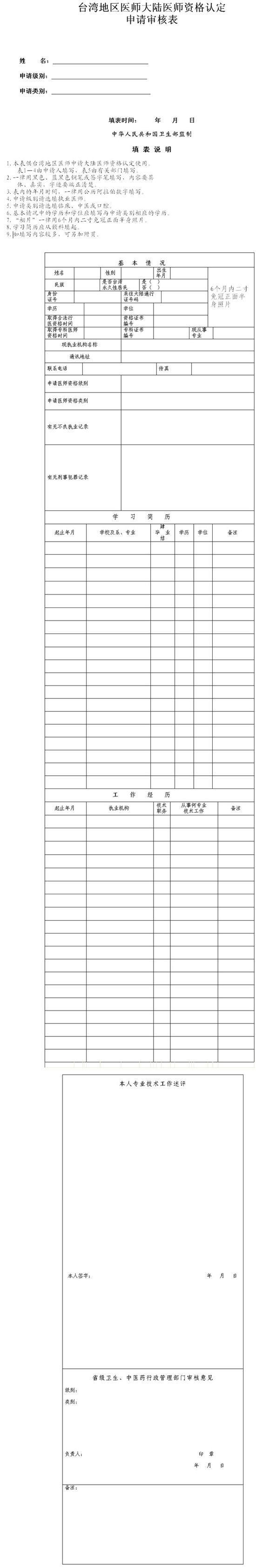 ?。ㄒ唬┡_(tái)灣地區(qū)醫(yī)師大陸醫(yī)師資格認(rèn)定申請(qǐng)審核表;