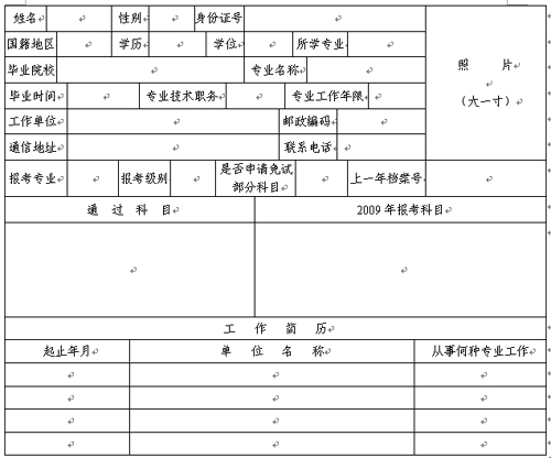 2009年度執(zhí)業(yè)藥師資格考試報名發(fā)證登記表