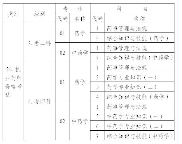 4.2010年度執(zhí)業(yè)藥師資格考試科目及其代碼對(duì)應(yīng)表