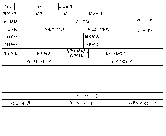 2010年度執(zhí)業(yè)藥師資格考試報(bào)名發(fā)證登記表