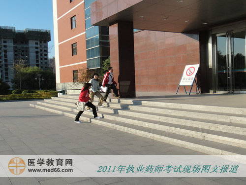 2011年執(zhí)業(yè)藥師考試于10月15日順利開考,大家一起走進執(zhí)業(yè)藥師考場,為了自己備戰(zhàn)多日的考試做最后的沖刺。醫(yī)學(xué)教育網(wǎng)編輯來到北京地區(qū)執(zhí)業(yè)藥師資格考試各考點,帶大家一起體驗考場氛圍。