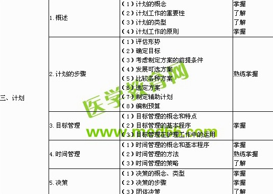 | 五、護(hù)理人力資源管理 | 1.人員管理概述 | (1)人員管理的概念及意義醫(yī)學(xué)教育網(wǎng)整理 (2)人員管理的基本原則 | 了解 掌握 |