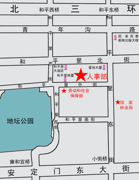 交通路線:公交 13 路、 62 路、 116 路、 117 路、 406 路 、 713 路、 807 路、 104 路、 201 路(夜班)和平里站