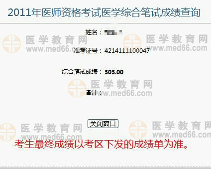 2011年臨床執(zhí)業(yè)醫(yī)師輔導學員杜**(學員代碼:harr****)12月8日晚查得臨床執(zhí)業(yè)醫(yī)師成績成績——505分,高分通過此次醫(yī)師考試!