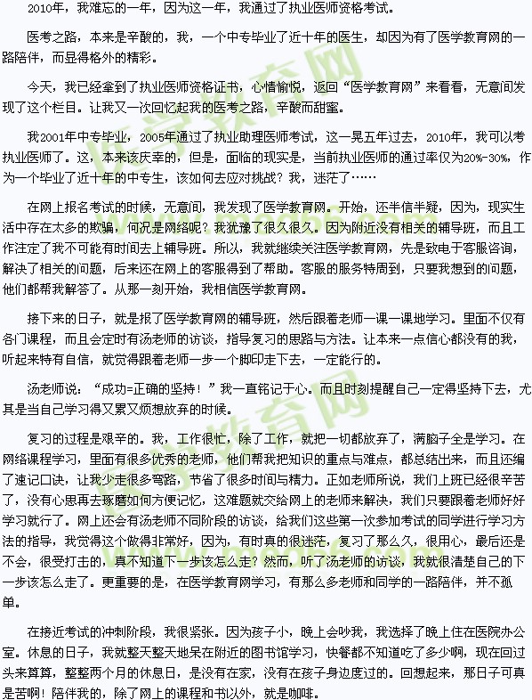 2010年,我難忘的一年,因為這一年,我通過了執(zhí)業(yè)醫(yī)師資格考試。