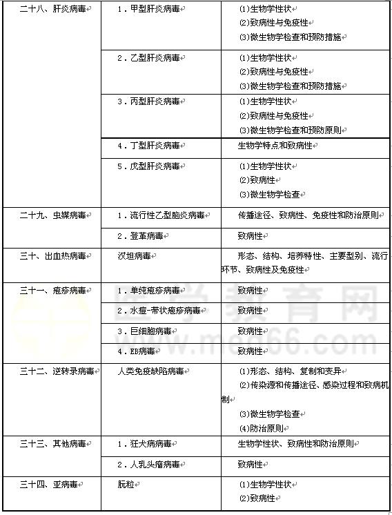 | 4.其他病毒 | (1)腺病毒的生物學(xué)性狀和致病性 (2)風(fēng)疹病毒的致病性及防治原則 |