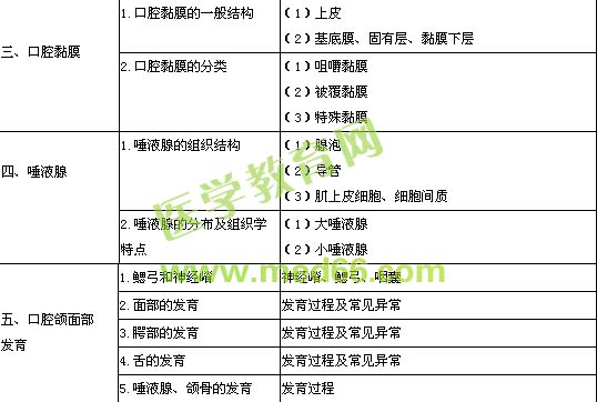 | 十二、口腔黏膜 病 | 2.常見口腔黏膜病 | (1)口腔白斑 (2)紅斑 (3)口腔扁平苔蘚 (4)慢性盤狀紅斑狼瘡 (5)口腔黏膜下纖維化 (6)天皰瘡醫(yī) 學 教育網搜集整理 (7)良性黏膜類天皰瘡 (8)念珠菌病 (9)肉芽腫性唇炎 | ||