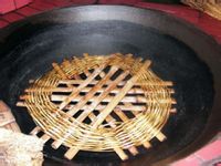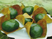 制作方法:(1) 打面。先將粘米浸泡一至三小時,再把糯米合進(jìn)去同泡一會,濾干水,打成面( 以前無電機時用碓舂) 。面打好后,一般應(yīng)立即使用,否則,應(yīng)將其攤干,以勉發(fā)酸。(2) 拆煮白蒿打芡 妥 面。野自蒿應(yīng)鮮摘鮮用,拆洗凈后,和水煮熟,擠干,用碓舂爛,然后與少量米面一起在鍋里打芡。若使用綿菜,則更方便,因綿菜一般只在清明時節(jié)揚花后采摘來曬干,以備一年之甩。屆時,只須將其舂成沫狀打芡則可。打芡時,須掌握整個米面的量,若芡打得太多,粑會變甜,打得太少,粑的綿韌性就差些。打好芡,就合在米面中 綏 揉成粑團(tuán)。(3) 制餡。餡一般分成甜二種。成餡用臘肉( 鮮肉也可) 、豆腐干( 均煮熟切成小顆) 、蒜苗( 切碎) ,再加少量腌制大頭菜,炒熟后備用;甜餡一般用黑芝麻,炒香舂爛加糖即可。原料備齊,包餡上甑蒸熟即可食用。湘西自治州農(nóng)民喜歡用桐樹葉子包好蒿菜粑再蒸. 蒿菜粑韌綿糯滑,有一股濃郁的野蒿香,且益氣健肺,和緩脾胃。但在以前,它卻是好吃難春,尤其到了年關(guān),有碓的人家常常排起長隊,勞力弱的往往得全家出動,辛苦一天也許才春得完十斤米?,F(xiàn)在打米面容易了,做起來也就不難,每逢家人過生,無論老少,都要做一點,松桃人謂之“春一下”,其受歡迎的程度,即使在今日的城鎮(zhèn),也往往是超過洋味十足的生日蛋糕的。