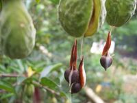 1。白木香 常綠喬木,幼枝有疏柔毛。葉互生,革質(zhì),有光澤,卵形、倒卵形或橢圓形,先端短漸尖。傘形花序頂生或腋生,花黃綠色,芳香,花萼淺鐘狀,裂片5,兩面均有短柔毛;花瓣10,鱗片狀,有毛;雄蕊10,一輪;雌蕊子房上位,2室。蒴果木質(zhì),倒卵形,長(zhǎng)2.5--3 厘米;種子基部有長(zhǎng)約2 厘米的尾狀附屬物?;ㄆ?--4月份,果期5--6月份。生于平地、丘陵的疏林或荒山中,有少量栽培。分布于福建、廣東省、海南、廣西省。