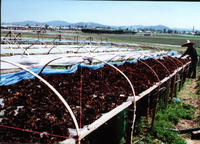 6.耳場(chǎng)準(zhǔn)備。耳場(chǎng)可選擇在房前屋后、果園林地、菜地大田中,要求陰涼通風(fēng)、排灌方便。如無(wú)自然遮陽(yáng)條件,應(yīng)建高2米的遮陽(yáng)擁,擁內(nèi)光線“三陽(yáng)七陰”。場(chǎng)地選好后,依地形整地,挖寬1米-1.2米、深0.15米-0.2米、長(zhǎng)度不限的畦,四周開(kāi)好排水溝。最后全場(chǎng)噴灑殺蟲(chóng)滅菌藥。