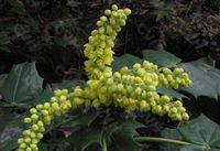 十大功勞分為闊葉十大功勞和狹葉十大功勞兩種。又名華南十大功勞,土黃連、刺黃芩。十大功勞植株從地面叢生而出,莖稈直立,分枝力弱,株高可達(dá)2m,莖稈有節(jié)而多棱。奇數(shù)羽狀復(fù)葉,長(zhǎng)12—23cm,每個(gè)復(fù)葉上著生小葉3-9枚。 小葉呈長(zhǎng)橢圓狀披針形,長(zhǎng)8—12cm,寬1.2—1.9cm,先端的小葉漸大,頂生的一枚最大,葉肉脆硬,革質(zhì),先端漸尖或急尖,基部楔形,葉緣每側(cè)各有6—13枚刺狀銳齒。正面為暗綠色,略有光澤,背面為黃綠色。 十大功勞由多花組成總狀花序,著生在莖稈頂端的葉腋間,花序長(zhǎng)3-5cm,常3—5個(gè)花序叢生在一起而組成圓錐狀花叢,小花黃色?;ㄆ?—8月,11月下旬果實(shí)成熟。 同屬還有闊葉十大功勞(M.bealei)也常見栽培。