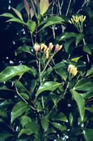 【植物形態(tài)】丁香樹是一種常綠喬木,高達10-20米,葉橢圓形,單葉大,對生,革質;花為紅色,聚傘花序,花蕾初起白色,后轉為綠色,當長到1.5-2厘米長時轉為紅色,這時就可以收獲,花蕾入藥稱公丁香。萼托長,花萼和花瓣4;果實為長橢圓形,名為母丁香。具體見右圖。