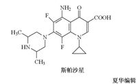 本藥的主要成份為司帕沙星,其化學(xué)名為5-氨基-1-環(huán)丙基-7-(順式-3,5-二甲基-1-哌嗪基)-6,8-二氟-1,4-二氫-4-氧-哇啉-3-羥酸,分子式為C19H22F2N4O3,分子量為392.41。