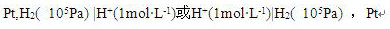 將鉑片表面鍍上一層多孔的鉑黑(細粉狀的鉑)(鍍鉑黑的目的是增加電極的表面積,促進對氣體的吸附,以有利于與溶液達到平衡)的鉑片,浸入氫離子濃度為1mol·L-1的酸溶液中(如HCl),在298K時不斷通人壓力為100kPa的純氫氣流,使鉑黑電極上吸附的氫氣達到飽和。這時,H2與溶液中H+可達到平衡: