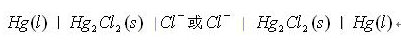 甘汞電極電極的構(gòu)造如圖所示。這是一類金屬-難溶鹽電極。它由兩個玻璃管組成,內(nèi)套管下部有一多孔素瓷塞,并盛有汞和甘汞混合的糊狀物,在其間插有作為導(dǎo)體的鉑絲。在其外管中盛有飽和溶液和少量晶體(以保證溶液處于飽和狀態(tài));外玻璃管的最底部也有一多孔素瓷塞。多孔素瓷允許溶液中的離子遷移。甘汞電極的圖示可表示為: