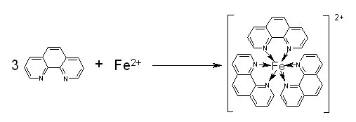 在pH=2~9的溶液中,F(xiàn)e2+與鄰二氮菲(phen)生成穩(wěn)定的桔紅色配合物Fe(phen)32+,