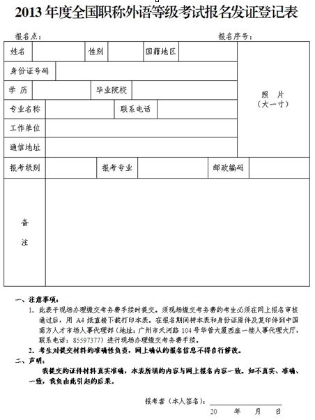 4.2013年度全國職稱外語等級考試報名發(fā)證登記表