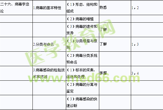 | 三十二、反轉(zhuǎn)錄病毒 | 1.人類免疫缺陷病毒 | (1)分類 | 掌握 | 1,3 |