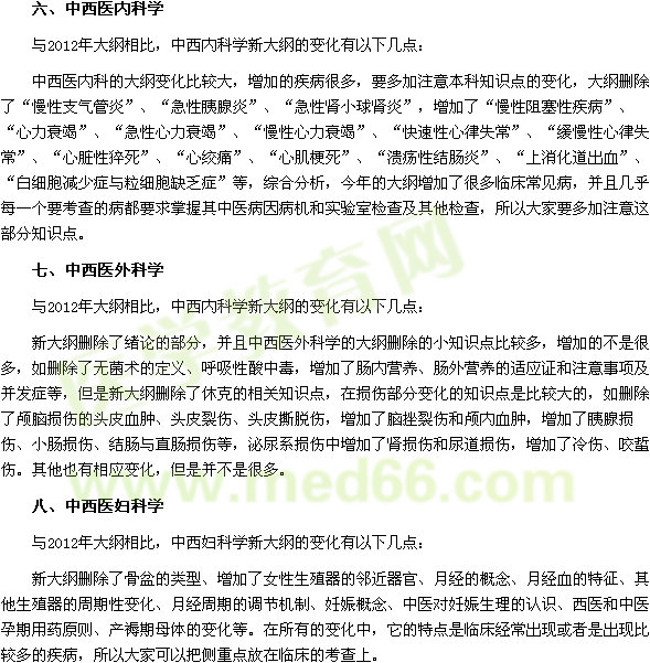 與2012年大綱相比,中西婦兒科學(xué)新大綱的變化有以下幾點(diǎn):