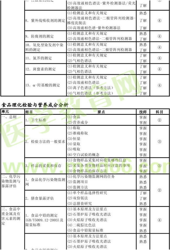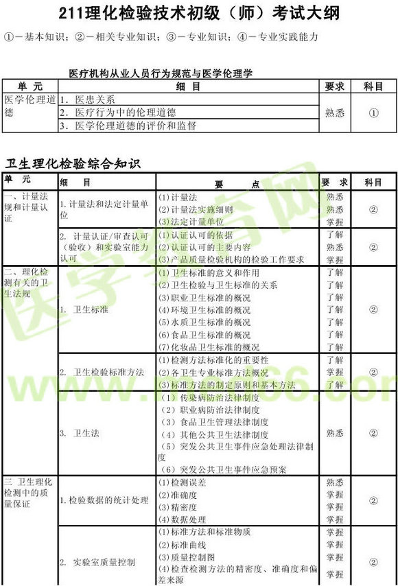 2013年理化檢驗(yàn)技師考試大綱