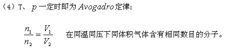 pV=nRT用于溫度不太低,壓力不太高的真實氣體。