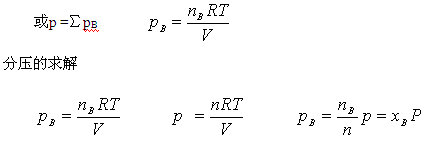 分壓:在相同溫度下,組分氣體B占有與混合氣體相同體積時所產(chǎn)生的壓力,叫做組分氣體B的分壓。