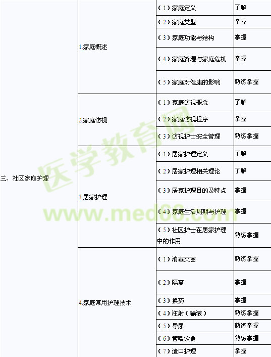 | 3.社區(qū)護(hù)理 | (1)社區(qū)護(hù)理的概念 | 熟練掌握 | ||||