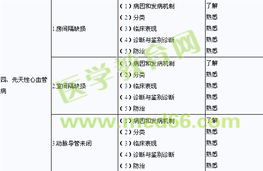 | 3.肥厚型心肌病 | (1)臨床表現(xiàn) (2)X線、心電圖和超聲心動圖檢查 (3)診斷和鑒別診斷 (4)治療措施 |
