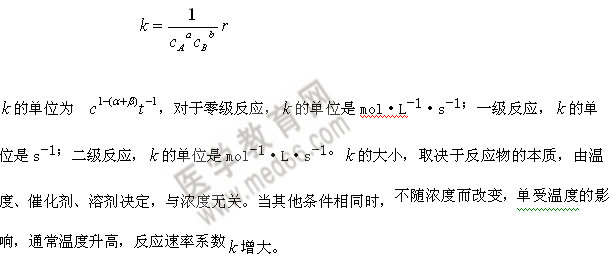 k是表明化學反應速率相對大小的物理量。