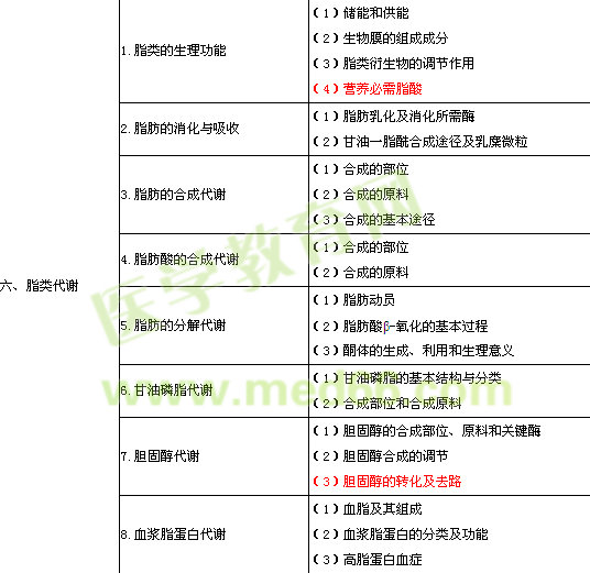 1.糖的分解代謝 | (1)糖酵解的基本途徑、關(guān)鍵酶和生理意義 (2)糖有氧氧化的基本途徑及供能 (3)三羧酸循環(huán)的生理意義 |