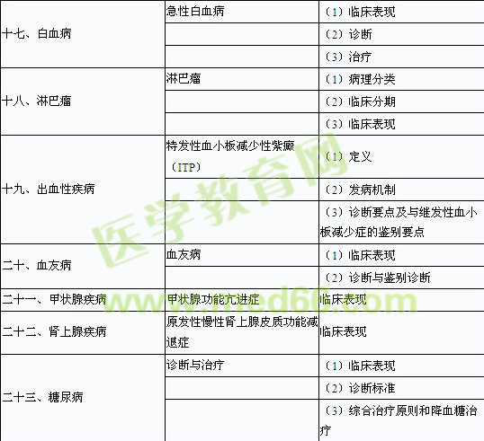 2013年口腔執(zhí)業(yè)醫(yī)師《內(nèi)科學(xué)》考試大綱: