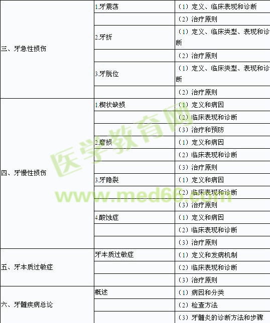 2013年口腔執(zhí)業(yè)醫(yī)師考試大綱《牙體牙髓病學》部分內容如下: