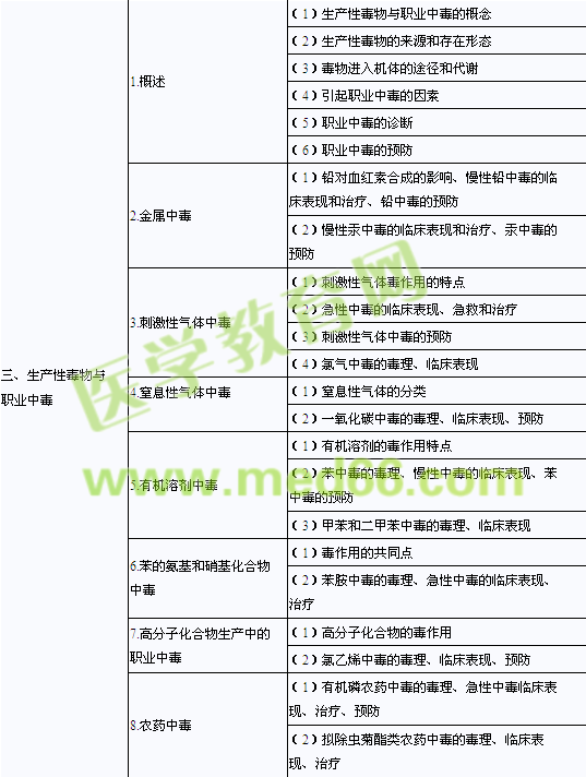 2013公衛(wèi)助理醫(yī)師《勞動(dòng)衛(wèi)生與職業(yè)病》考試大綱由醫(yī)學(xué)教育網(wǎng)整理如下: