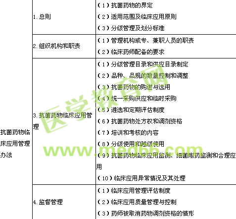 1.在第二大單元“藥事管理法規(guī)”中,新增《抗菌藥物臨床應(yīng)用管理辦法》(衛(wèi)生部令第84號)作為考試內(nèi)容。