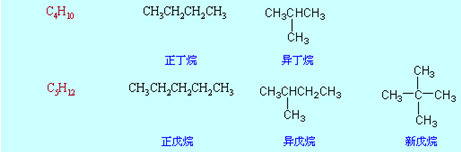 丁烷(C4H10)有兩種不同的異構(gòu)體;戊烷(C5H12)有三種異構(gòu)體。