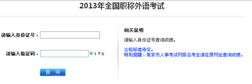 揚(yáng)州2013年職稱(chēng)英語(yǔ)考試成績(jī)查詢(xún)?nèi)肟陂_(kāi)放,請(qǐng)大家點(diǎn)擊下面的圖片或者官方地址查詢(xún)揚(yáng)州2013年職稱(chēng)英語(yǔ)考試成績(jī):