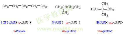 烷烴的英文名稱是在meth-,eth-,prop-,but- 等表示碳原子數(shù)的詞頭后,加上詞尾-ane.烷烴異構(gòu)體可用詞頭“正(normal或n-)、異(iso或i-)、新(neo)”來區(qū)分。“正”表示直鏈烷烴,常??梢允÷?。“異”表示末端為