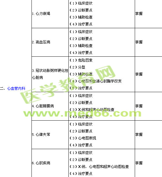 2014年內(nèi)科學(xué)主治醫(yī)師考試大綱-相關(guān)專(zhuān)業(yè)知識(shí)